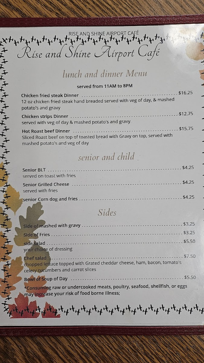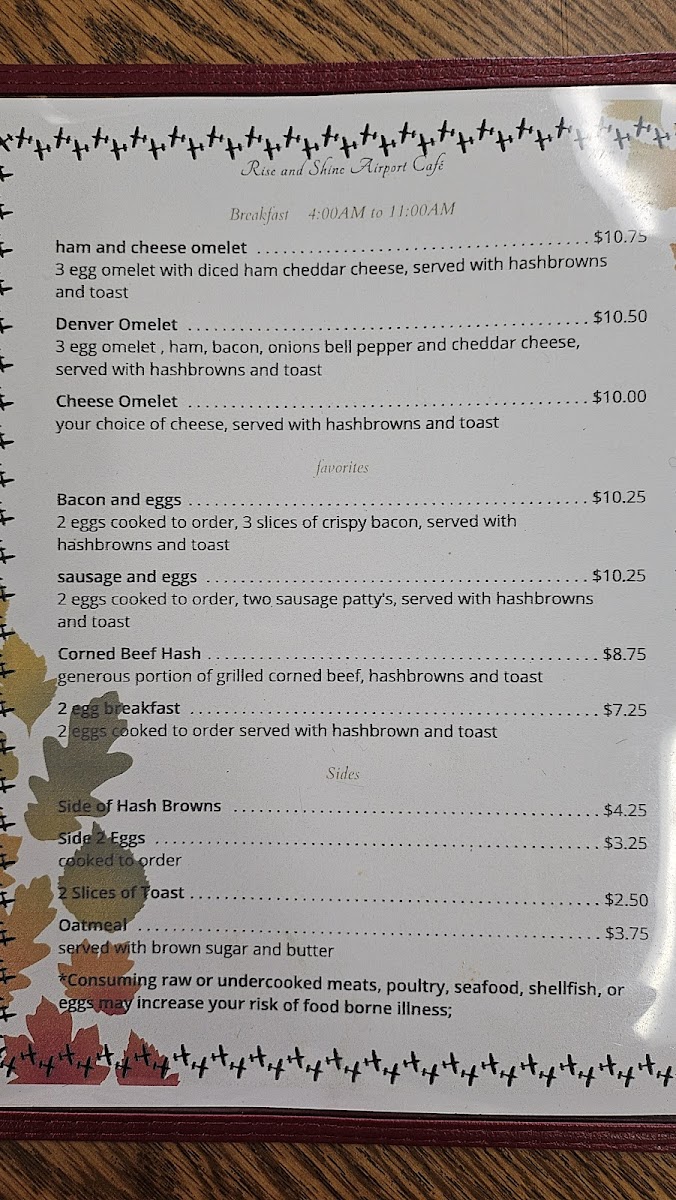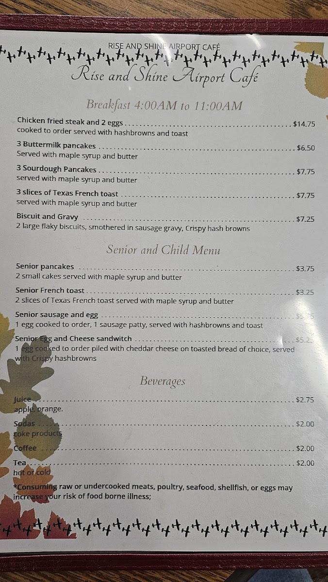 So, whether you’re in a rush or have some time to spare, Rise And Shine Airport Cafe. Llc Menu is the ideal place to kick back, enjoy a great meal, and get ready for the day ahead.